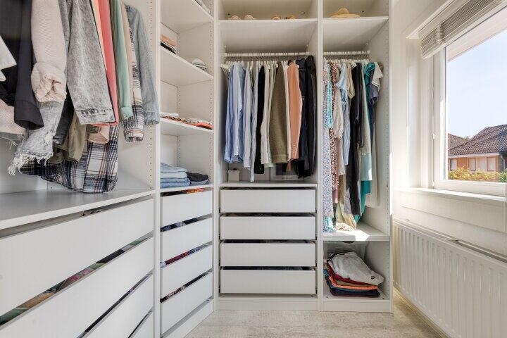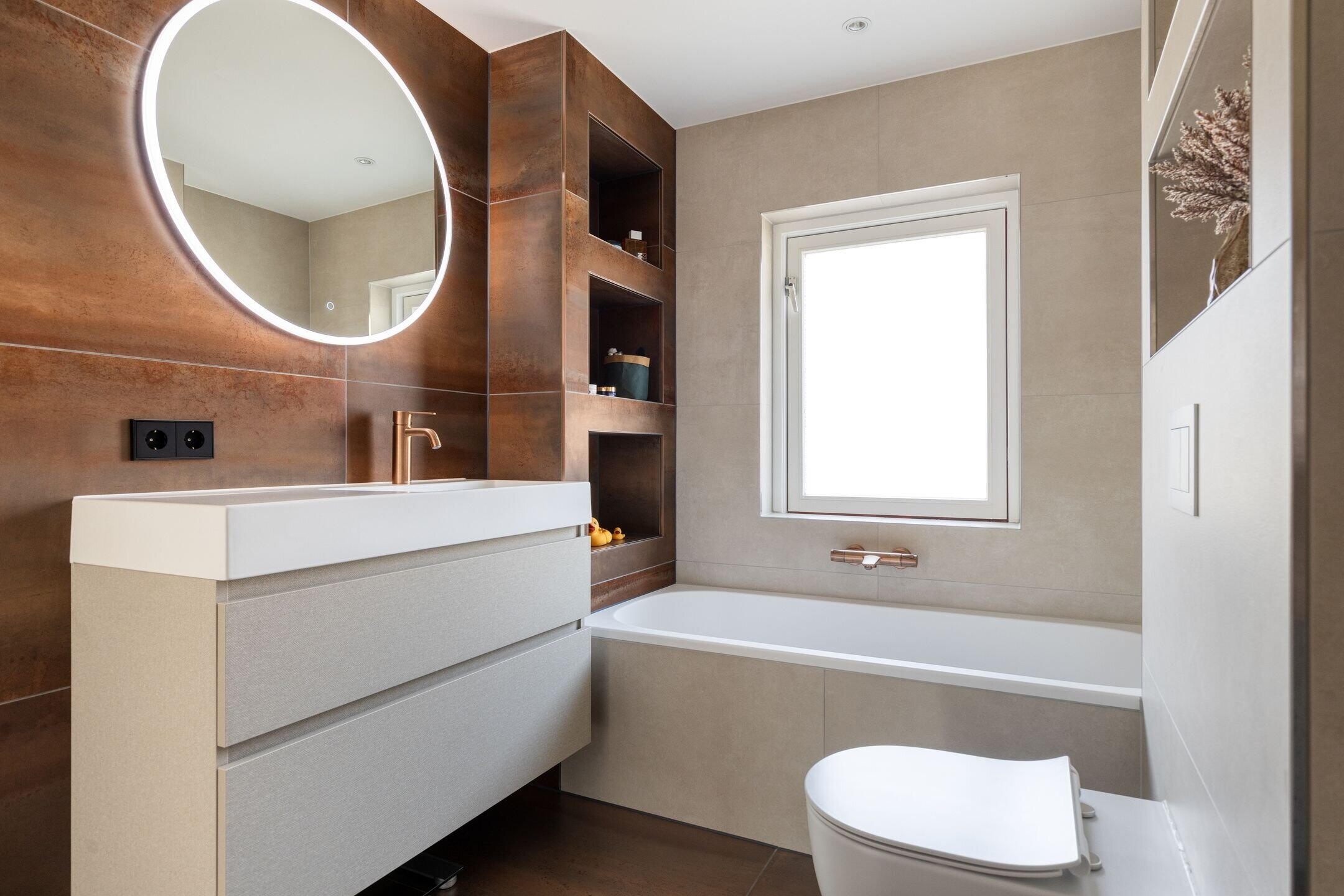 Op de eerste verdieping, volledig voorzien van comfortabele vloerisolatie, vind je twee ruime slaapkamers, waarvan de master bedroom toegang heeft tot een balkon. De naastgelegen kamer is op dit ogenblik in gebruik als fijne walk-in closet maar kan uiteraard ook weer in gebruik worden genomen als werk- of kinderkamer. De moderne badkamer (2025) is compleet uitgerust met vloerverwarming, ligbad, separate douche, wastafel en tweede toilet.