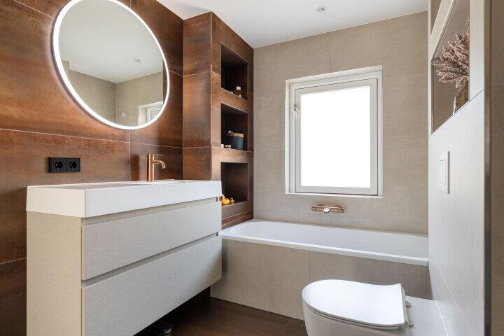 • First Floor Insulation: The entire first floor is equipped with Knauf Accoustifit floor insulation; underfloor heating (connected to the central heating boiler) was installed in the bathroom.
